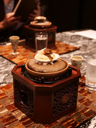Geta (tongs japonaises en bois) enfilées, nous les faisons glisser sur le parquet chantant des galeries qui connectent les différents bâtiments du ryokan, puis les rangeons dans les paniers en osier qui nous accueillent à l'entrée des onsen hommes et femmes séparés : le rituel de l'art du bain japonais peut enfin commencer. L'immersion et la détente sont totales, la vapeur tombe en rideau sur les vitres et miroirs, les senmenki (bassines pour se laver) sont posées sur les tabourets de douche qui sentent bon le bois, les ventilateurs des vestiaires battent leur plein. Nous fermons les yeux et ouvrons nos oreilles aux sons des bains qu'il faut déjà traverser les noren (rideau fixé à l'entrée des bains pour indiquer s'ils sont féminins ou masculins) dans l'autre sens pour aller manger. Les cheveux encore mouillés, les ceintures de nos yukata bien serrées, l'esprit apaisé, le sol en bois qui craque toujours sous le poids de nos corps pourtant plus légers, nous rejoignons la salle privatisée pour notre dîner. L'enchaînement des plats de saison ne se fait pas désirer et l'accord mets et saké nous ravit. Avant de nous coucher, nous fermons nos haori (veste), adoptons des parapluies et partons nous promener autour du ryokan. La pluie s'est en effet invitée et elle rend oniriques les façades de Sekizenkan illuminé.